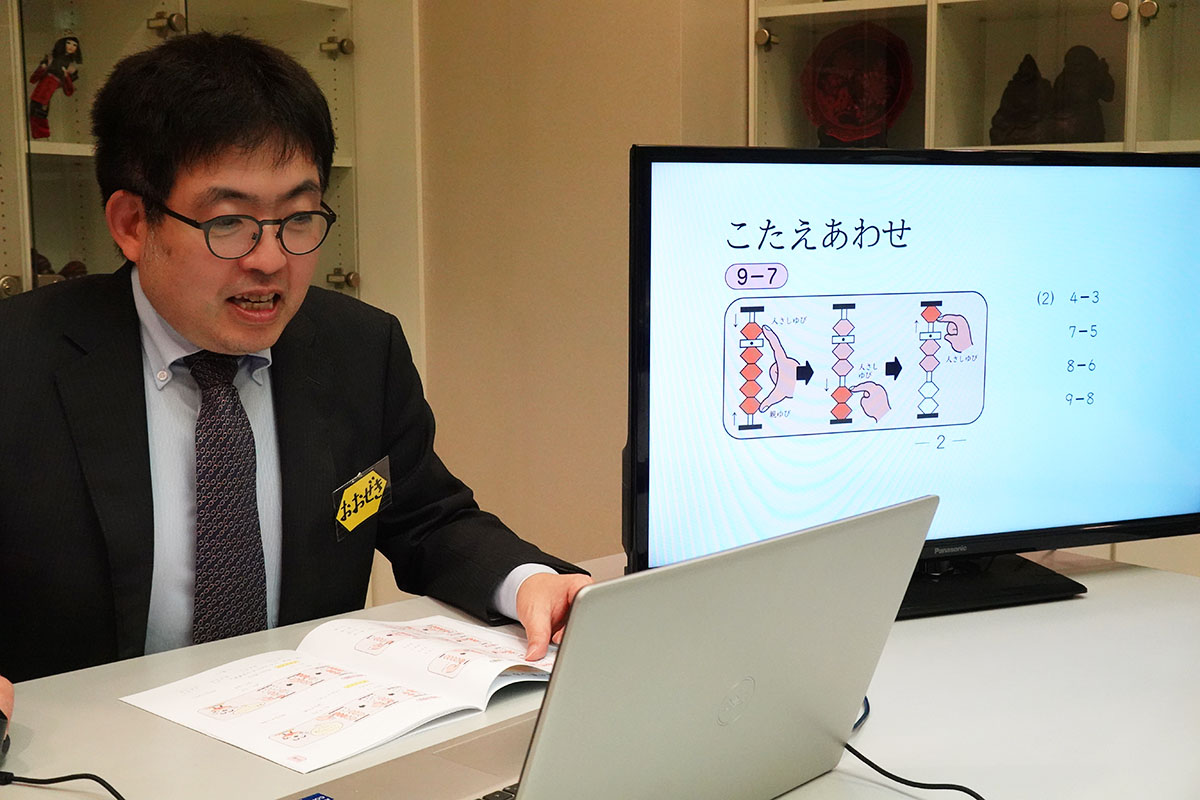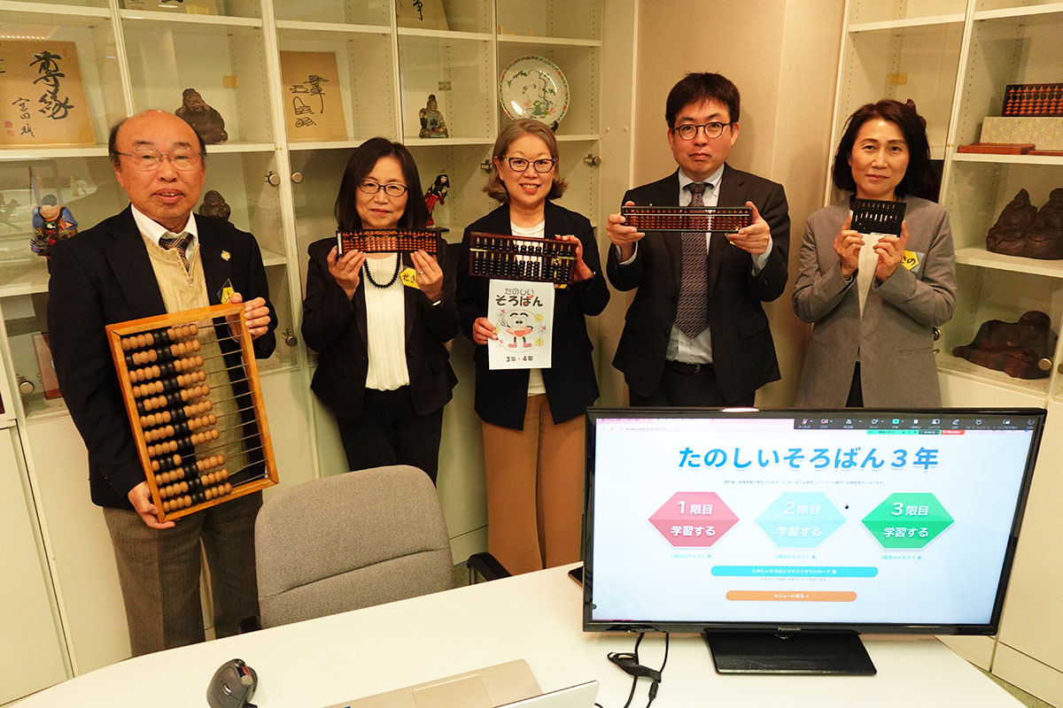 令和8年2月25日(水)全国珠算教育団体連合会事務局(台東区)にて、同連合会のWebサイトにある小学校算数科副教材「たのしいそろばん3年生」の動画教材を使用し、4校11クラス約300名の生徒さんを対象に、一斉オンライン授業を行いました。